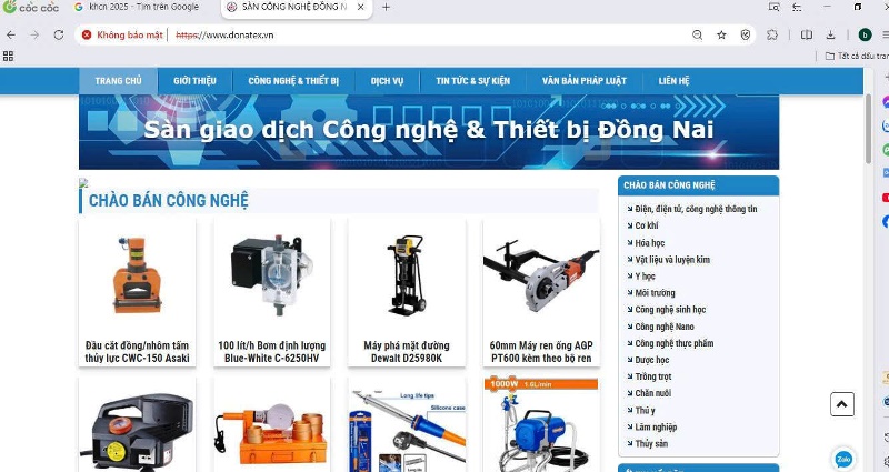 Tại Đồng Nai, để hỗ trợ, phát triển thị trường KHCN, chuyển giao công nghệ, thương mại hóa kết quả nghiên cứu, Sở KH&CN đã giao nhiệm vụ cho Trung tâm KH&CN xây dựng và vận hành Sàn giao dịch công nghệ thiết bị trực tuyến (Donatex.vn) và đưa vào vận hành từ năm 2021.